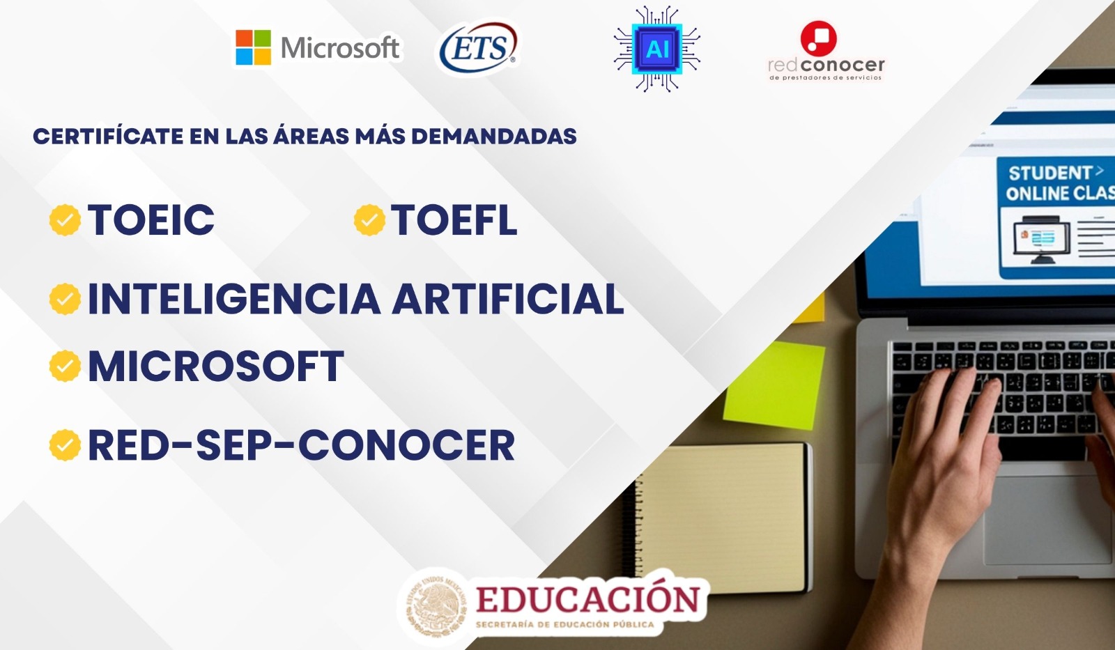 Descubre en qué áreas del conocimiento te puedes certificar. Nuestros certificados están avalados por el Consejo Nacional de Normalización y Certificación de Competencias Laborales RED-SEP-CONOCER